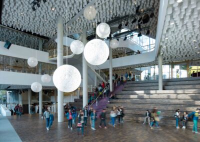Niet alleen bieden onze Tuned® Swing akoestische baffles een uitstekende geluidsabsorptie, ze zijn ook nog eens visueel aantrekkelijk en kunnen de sfeer in uw ruimte versterken. Dankzij de beschikbare vormen kunnen de akoestische panelen naadloos worden geïntegreerd in het interieur van uw ruimte. De rechte panelen zijn bijvoorbeeld perfect voor moderne en strakke interieurs, terwijl de cilindervormige panelen een meer organische uitstraling hebben en daardoor goed passen in natuurlijke en rustgevende omgevingen.